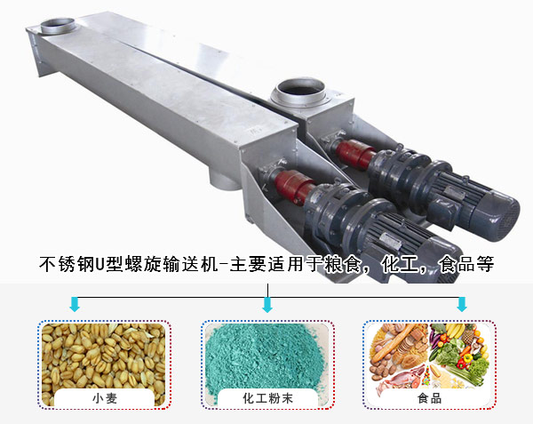 2,不銹鋼U行螺旋輸送機-主要適用于糧食,化工,食品等對輸送環(huán)境有要求的行業(yè),清潔度高,并且不會對物料產(chǎn)生污染,使用時間長,但是造價相對較高。