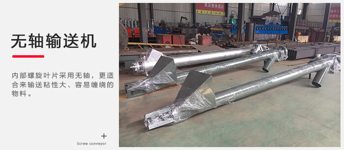 而無軸大傾角螺旋輸送機(jī)與有軸的恰恰相反,內(nèi)部螺旋葉片采用無軸,更適合來輸送粘性大、容易纏繞的物料,這是有軸輸送機(jī)做不到的。