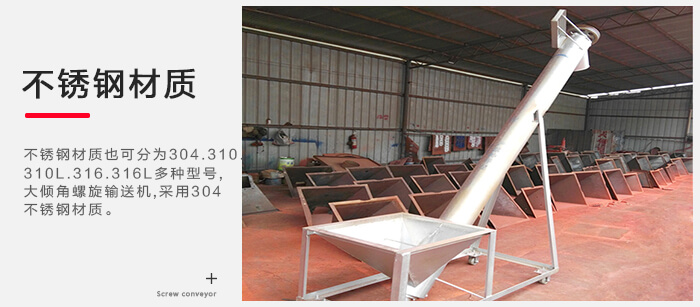 不銹鋼材質(zhì)也可分為304.310.310L.316.316L多種型號(hào),大傾角螺旋輸送機(jī),所有的機(jī)型都可以采用304不銹鋼材質(zhì),但是當(dāng)輸送距離長(zhǎng)時(shí),表面積增大,打磨難度增加,一般會(huì)選擇噴砂,從視覺上就不會(huì)像常見的不銹鋼那樣光亮,但質(zhì)量不會(huì)有影響。