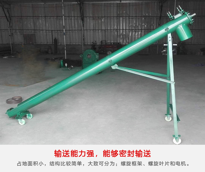 大傾角螺旋輸送機(jī):尺寸緊湊,斷面尺寸小,占地面積小,結(jié)構(gòu)比較簡單,大致可分為:螺旋框架、螺旋葉片和電機(jī);