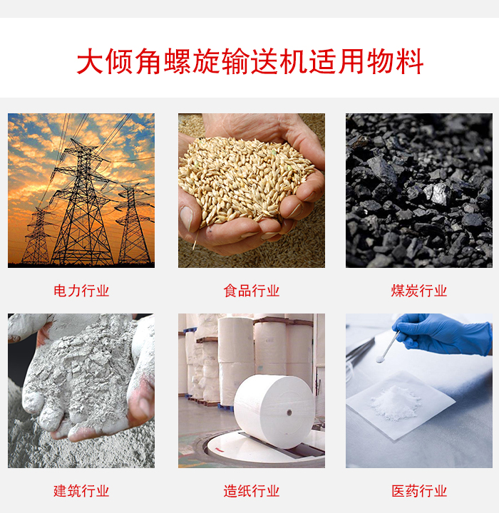 大傾角螺旋輸送機(jī)的適用范圍非常廣泛,例如糧食工業(yè)、建筑材料工業(yè)、化學(xué)工業(yè)、機(jī)械制造業(yè)、交通運(yùn)輸業(yè)等。其適用于各種粉狀、粒狀、小塊狀物料,還有可以輸送粘性,帶狀易纏繞的特殊型號。粒物料如谷物、豆類、面粉等食品類,干水泥、粘土、沙子等建筑類,鹽類、堿類、化肥等化學(xué)類,還有礦石等其他類別,粘性物料如濕水泥等,易纏繞物料如生活垃圾等??傊髢A角螺旋輸送機(jī)被廣泛應(yīng)用于各行各業(yè),可見其重要性,也印證了它是有價(jià)值的。