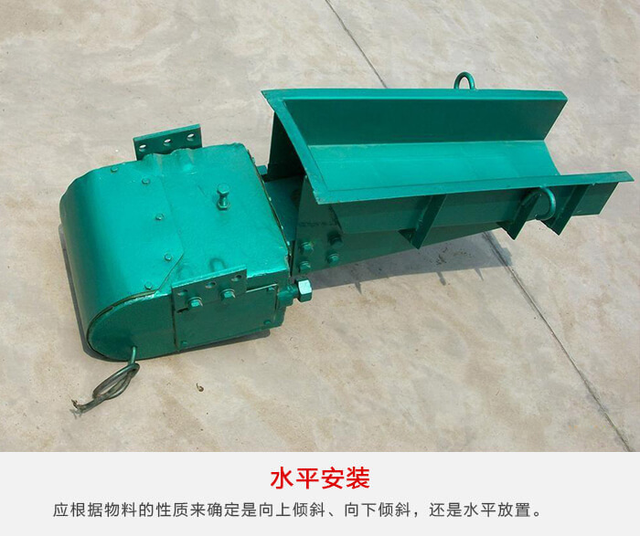 電磁振動給料機槽體可以水平安裝,也可以傾斜安裝,其給料能力與下傾角度成正比,但下傾角過大容易引起物料自流,難以保證給料精度。因此應(yīng)根據(jù)物料的性質(zhì)來確定是向上傾斜、向下傾斜,還是水平放置。