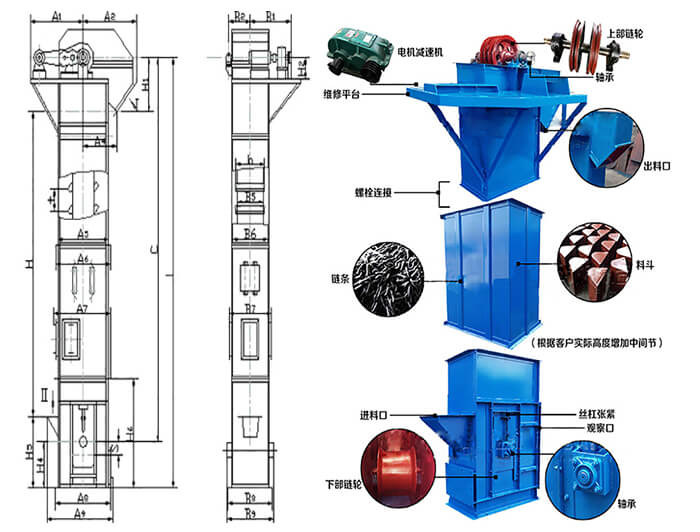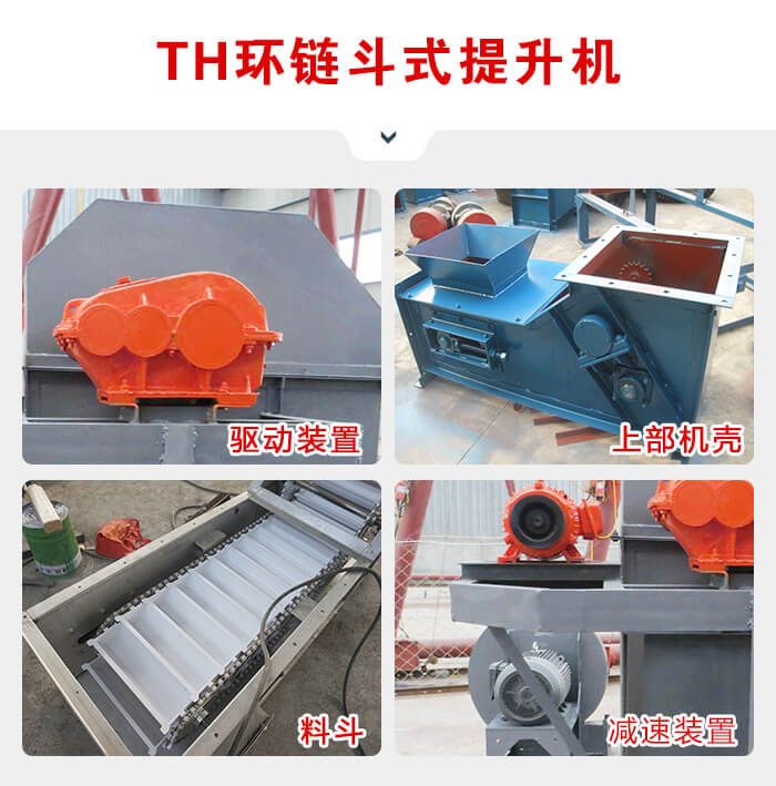 TH環(huán)鏈斗式提升機是一種常用的高效提升設備,提升產(chǎn)量大、效率高,主要由運行部件、牽引件(輸送鏈)、驅動裝置、上部裝置、中部機殼、下部裝置、加料口(入料口)和卸料口(出料口)組成??蛇m用與淀粉的高速提升輸送。
