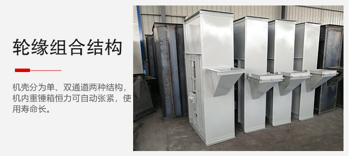 整機機殼分為單、雙通道兩種結構,機內重錘箱恒力可自動張緊,鏈輪為可更換輪緣組合式結構,更換簡便;使用壽命長,
