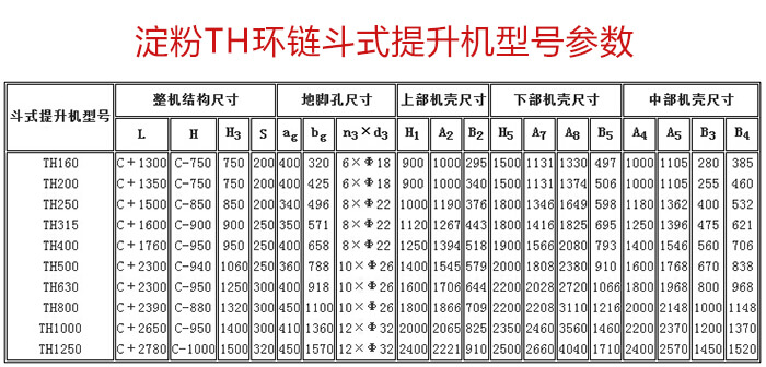 粉TH環(huán)鏈斗式提升機型號有TH160、TH250 、 TH315、TH400 、TH500等。同時大漢機械支持產(chǎn)品特殊定做,根據(jù)您的要求為您定制出合適的設備!