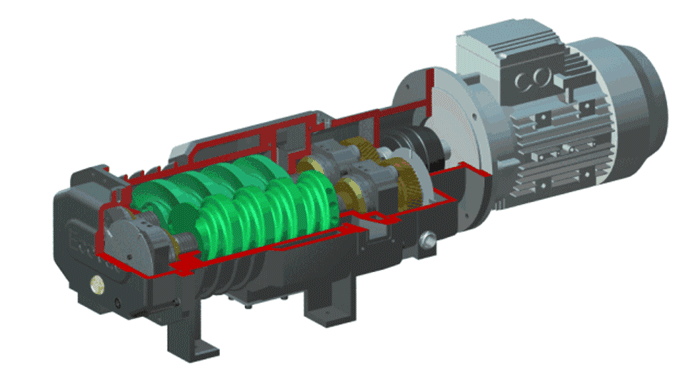 雙軸螺旋輸送機(jī)工作時(shí),物料從進(jìn)料口進(jìn)入,兩根螺旋軸相反方向轉(zhuǎn)動(dòng)時(shí)(一根左旋,一根右旋,可避免物料堵塞),物料在螺旋葉片的推力以及物料與葉片產(chǎn)生的摩擦力作用下,物料伴隨螺旋葉片的向前推動(dòng)而沿著料槽向前移動(dòng),直至出料口排出;在輸送過程中,還同時(shí)可對(duì)物料進(jìn)行攪拌和破碎。