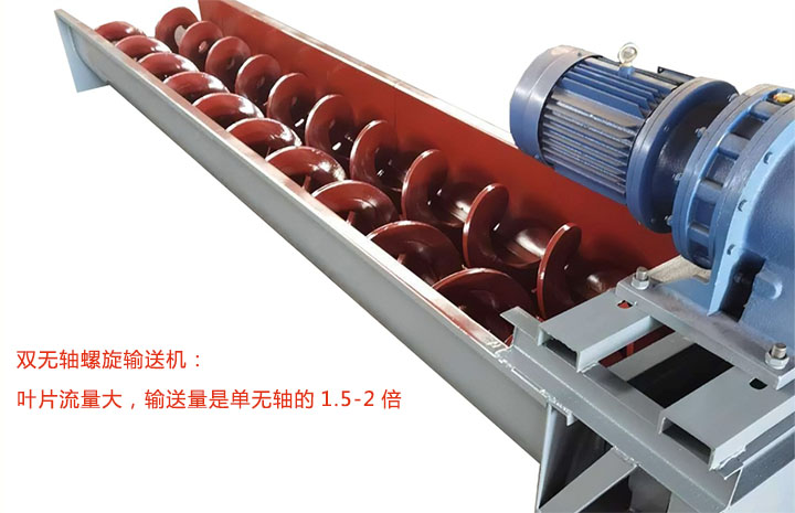 此外,想要輸送產(chǎn)量大選雙無(wú)軸螺旋輸送機(jī),雙無(wú)軸設(shè)計(jì),葉片流量大,輸送量是單無(wú)軸的1.5-2倍;