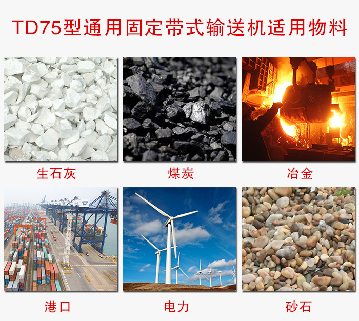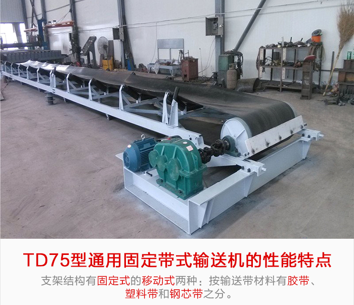 TD75通用固定帶式輸送機(jī)由于輸送量大、結(jié)構(gòu)簡(jiǎn)單、維護(hù)方便、成本低、通用性強(qiáng)等優(yōu)點(diǎn),而被廣泛地應(yīng)用在冶金、礦山、煤炭、港口、交通、水電、化工等部門進(jìn)行裝車、裝船、轉(zhuǎn)載或堆積各種常溫狀態(tài)的松散密度為500~2500kg/m3各種散狀物料或成件物品。