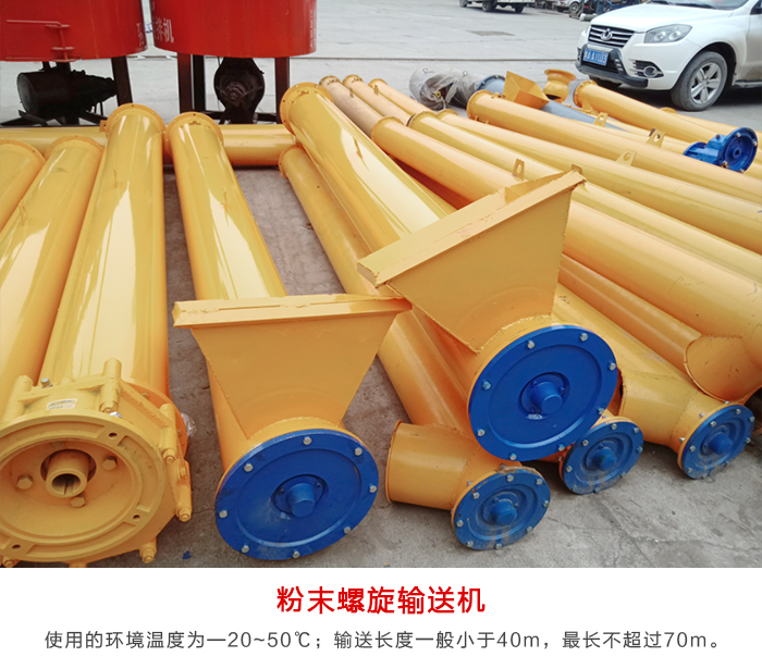 2,螺旋輸送機(jī)使用的環(huán)境溫度為—20~50℃;輸送機(jī)的傾角β≤20°;輸送長(zhǎng)度一般小于40m,最長(zhǎng)不超過70m?! ?/p>