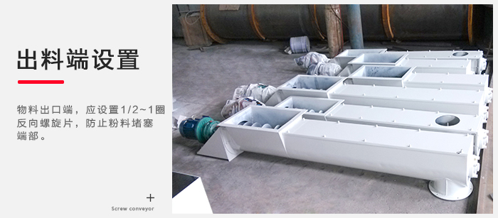 4)LS、GX型螺旋輸送機(jī)物料出口端,應(yīng)設(shè)置1/2~1圈反向螺旋片,防止粉料堵塞端部。