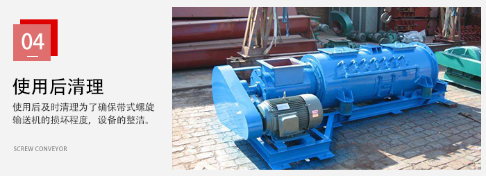 在帶使螺旋輸送機(jī)的,每次使用結(jié)束后,要注意螺旋輸送機(jī)的清理工作,這也是為了確保帶式螺旋輸送機(jī)的損壞程度,以及下次使用時(shí)物料的干凈。